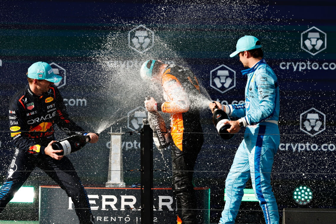 Er was ontzettend veel baanactie en er waren ook veel straffen dit weekeinde. Aan het eind was iedereen meer dan tevreden. Lando en de hele McLaren familie natuurlijk het meest. Het werd en echt ook door iedereen gegund: Max kon prima leven met P2 na een moeizaam weekend met toch wat foutjes in de setup en zijn momentje met die bollard. Ferrari-teambaas Fred Vasseur was bij kans zelfs de gangmaker bij de teamfoto van McLaren en zette een papaya cap op om vrolijk wat champagne over Norris te spuiten. Leclerc zag dat ze dit weekend de pace niet hadden bij Ferrari, maar wist wel zijn gretige teamgenoot achter zich te houden en bewijst zich weer als teamleider bij de Scuderia, met de ‘2e thuisrace’ in Imola op komst.